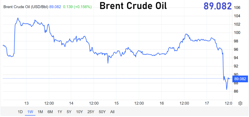 Das eigentliche Zentrum der Marktreaktion liegt jedoch beim Rohöl. Nach der Ankündigung des Iran, die Straße von Hormus wieder für die kommerzielle Schifffahrt freizugeben, fällt der Ölpreis zeitweise um rund zwölf Prozent. Ein solcher Einbruch in kurzer Zeit ist außergewöhnlich und zeigt, wie hoch die geopolitische Risikoprämie zuvor gewesen war.