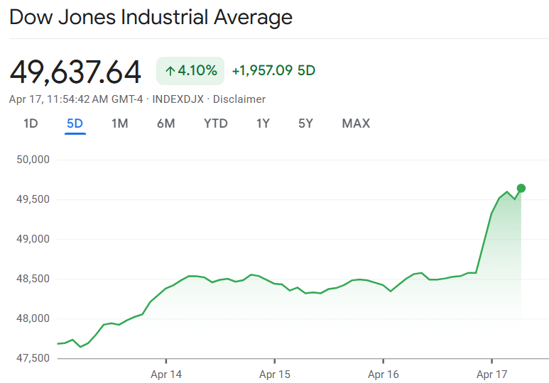 An den amerikanischen Börsen ist zum Wochenschluss ein Stimmungsumschwung mit voller Wucht zu spüren. Schon kurz nach dem Handelsstart in New York legen die großen Indizes deutlich zu. Der Grund dafür liegt vor allem in der Wiederöffnung der Straße von Hormus durch den Iran. Damit fällt auf einen Schlag ein Belastungsfaktor weg, der die Märkte in den vergangenen Tagen erheblich unter Druck gesetzt hatte.