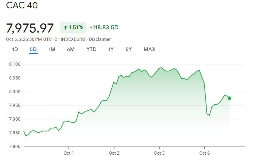 Der politische Schock machte sich unmittelbar an den Börsen bemerkbar. Der CAC-40-Index verlor 1,5 Prozent und war damit der schwächste Leitindex Europas. Besonders stark betroffen waren französische Bankenwerte: Société Générale brach um 6,7 Prozent ein, BNP Paribas um 3,4 Prozent und Crédit Agricole um 2,9 Prozent.