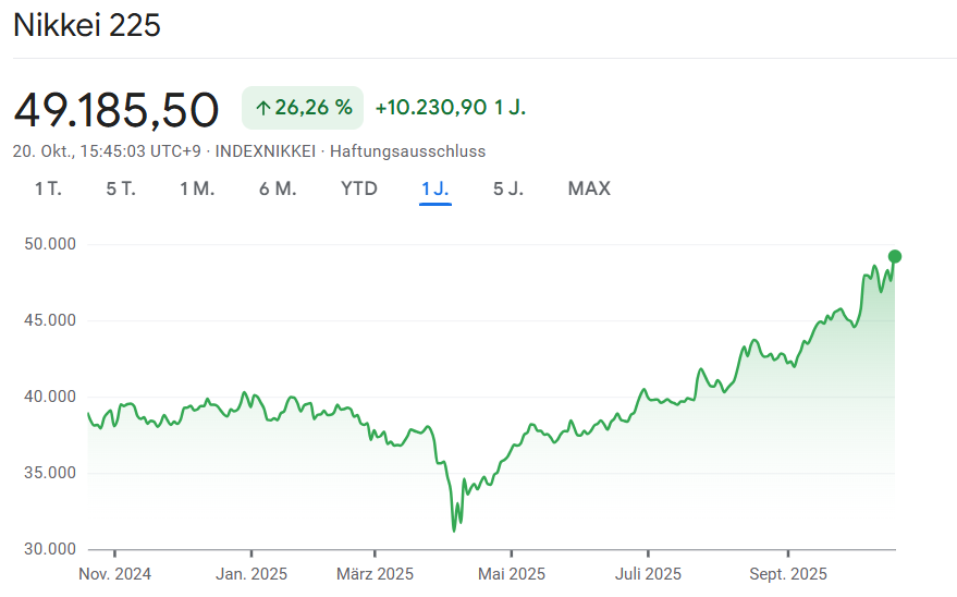 Der starke Anstieg in Tokio wurde vor allem durch politische Erwartungen beflügelt. Anleger rechnen damit, dass Sanae Takaichi, Vorsitzende der Liberaldemokratischen Partei (LDP), zur neuen Premierministerin ernannt wird.