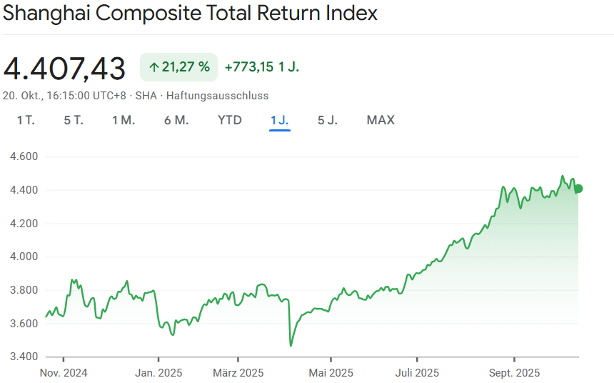 Positiv überraschte dagegen die Industrieproduktion, die im September um 6,5 Prozent zunahm und damit deutlich über den Erwartungen lag. Diese Entwicklung deutet darauf hin, dass die chinesische Exportindustrie trotz konjunktureller Schwäche im Inland stabil bleibt.