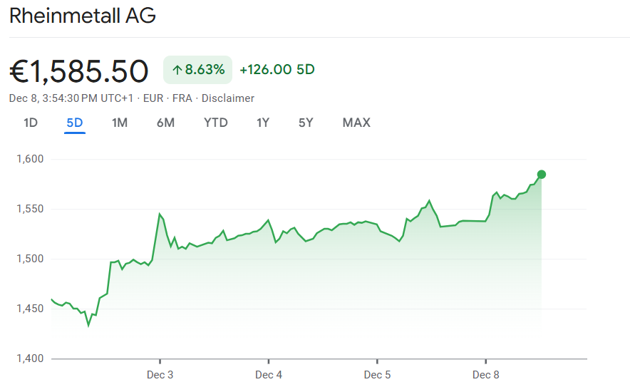 In diesem Umfeld beurteilen Analysten die Aussichten für europäische Verteidigungskonzerne als günstig. Die Aktien von Rheinmetall stiegen um 2,8 Prozent, Hensoldt gewann 1,3 Prozent, Thales legte 1,3 Prozent zu und Leonardo verbuchte ein Plus von 1,0 Prozent.