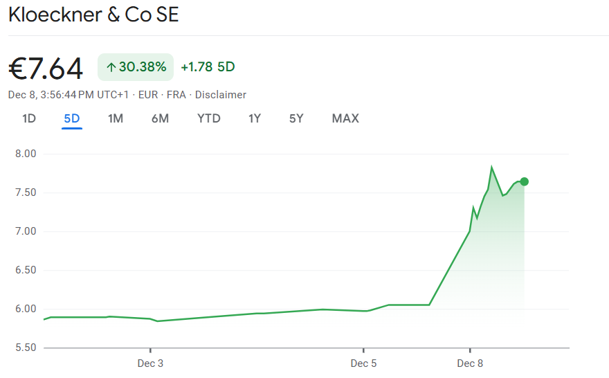 Klöckner & Co schießt wegen Übernahmespekulationen in die Höhe