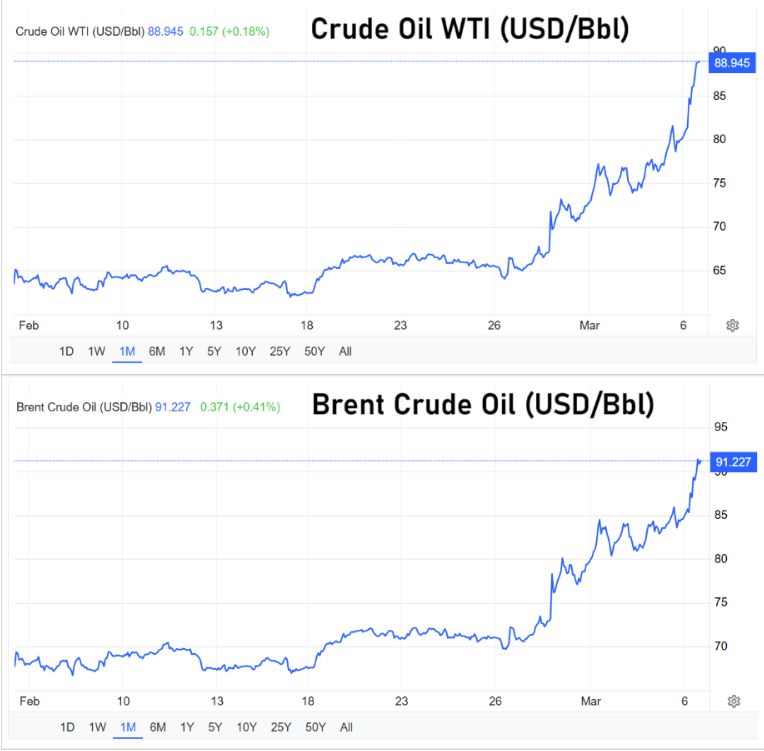 Seit Wochenbeginn summierten sich die Aufschläge bei Brent und WTI auf rund 16 beziehungsweise 19 Prozent. Zeitweise kam es zwar auch zu Gegenbewegungen. Brent verbilligte sich zwischenzeitlich auf 83,16 Dollar, WTI fiel kurzzeitig auf 78,24 Dollar zurück. Auslöser waren Hoffnungen auf politische Eingriffe. Ein Vertreter des Weißen Hauses brachte Maßnahmen am Öl-Terminmarkt ins Spiel. Zudem wurden Ausnahmegenehmigungen für den Kauf sanktionierten russischen Öls diskutiert, um Lieferengpässe abzufedern.