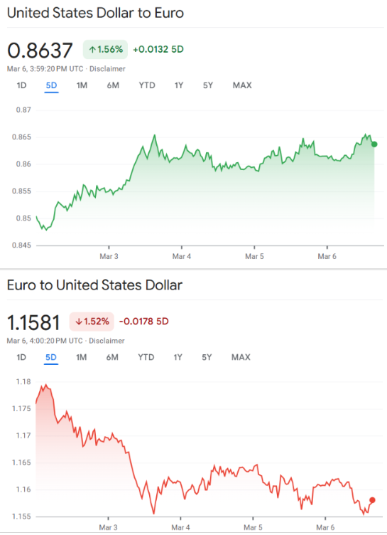 Der Euro geriet parallel unter Druck und fiel zeitweise bis auf 1,1553 Dollar. Zuletzt lag er bei rund 1,1574 Dollar. Auch hier spiegelte sich die Flucht vieler Investoren in den US-Dollar wider.