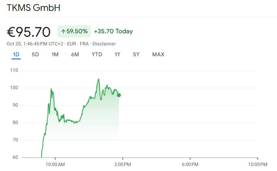 Der Börsenstart von Thyssenkrupp Marine Systems (TKMS) hat die Erwartungen übertroffen. Bereits in den ersten Handelsstunden schoss die Aktie des neu gelisteten Unternehmens von 60 Euro auf nahezu 100 Euro in die Höhe – ein Anstieg von über 60 Prozent. Die Abspaltung von der Muttergesellschaft Thyssenkrupp markiert damit einen der erfolgreichsten Börsengänge des Jahres.